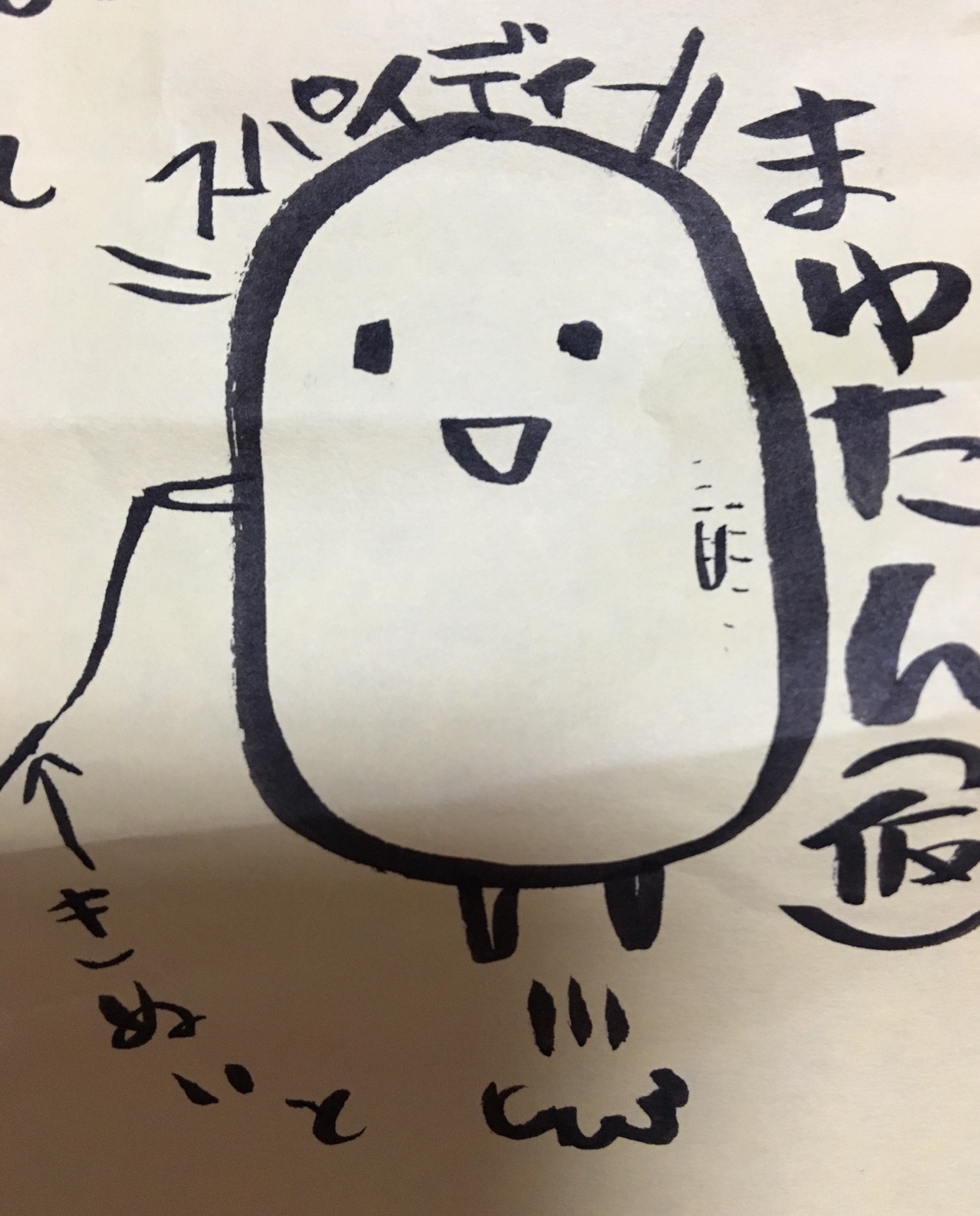 ところで、話は変わりますが、友人よりゆるキャラ「まゆたん」の草稿(というか走り書き)を送ってもらいました。