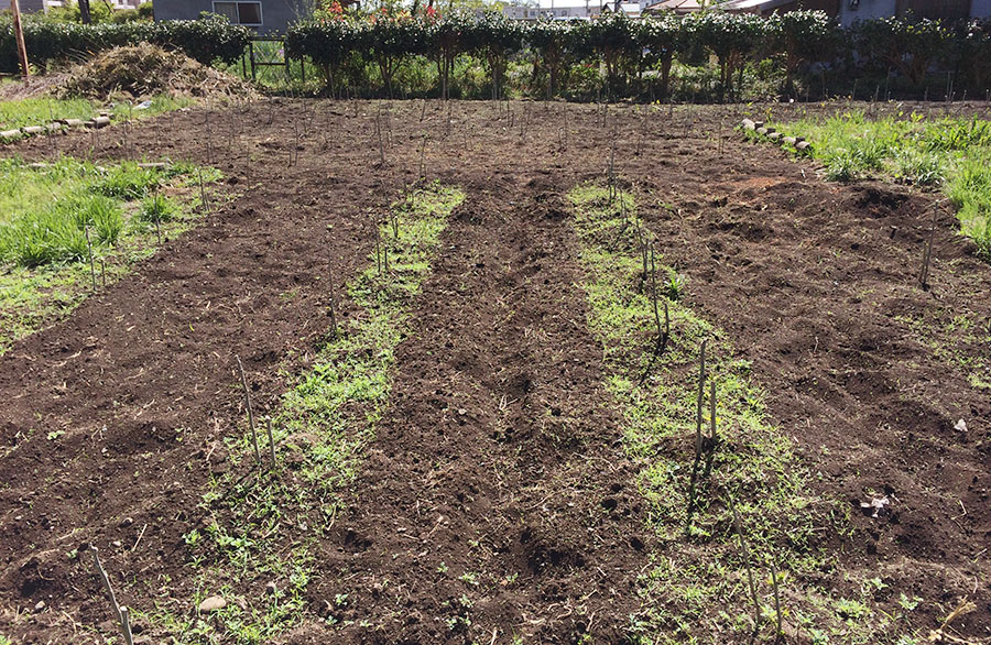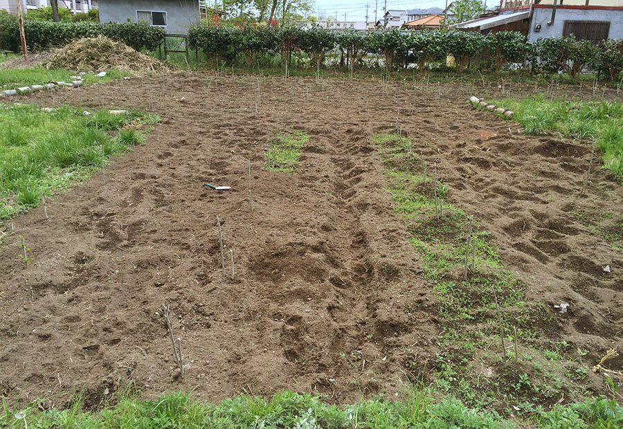 せっかく生えた草をむしるのは、都会っ子にとってはもったいない気持ちすらするものですが、ここは桑苗さんのためにご用意した場所。